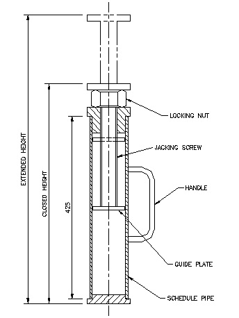 A complete range of jacks were designed by Paul Engert Mechanical Design for various height adjustments and loads ranging from 2 to 22 tonnes. Detail and assembly drawings were provided to Safe Way Lifting for manufacture. The jack components were sized and specified to withstand the buckling and compression loads imposed on them.
